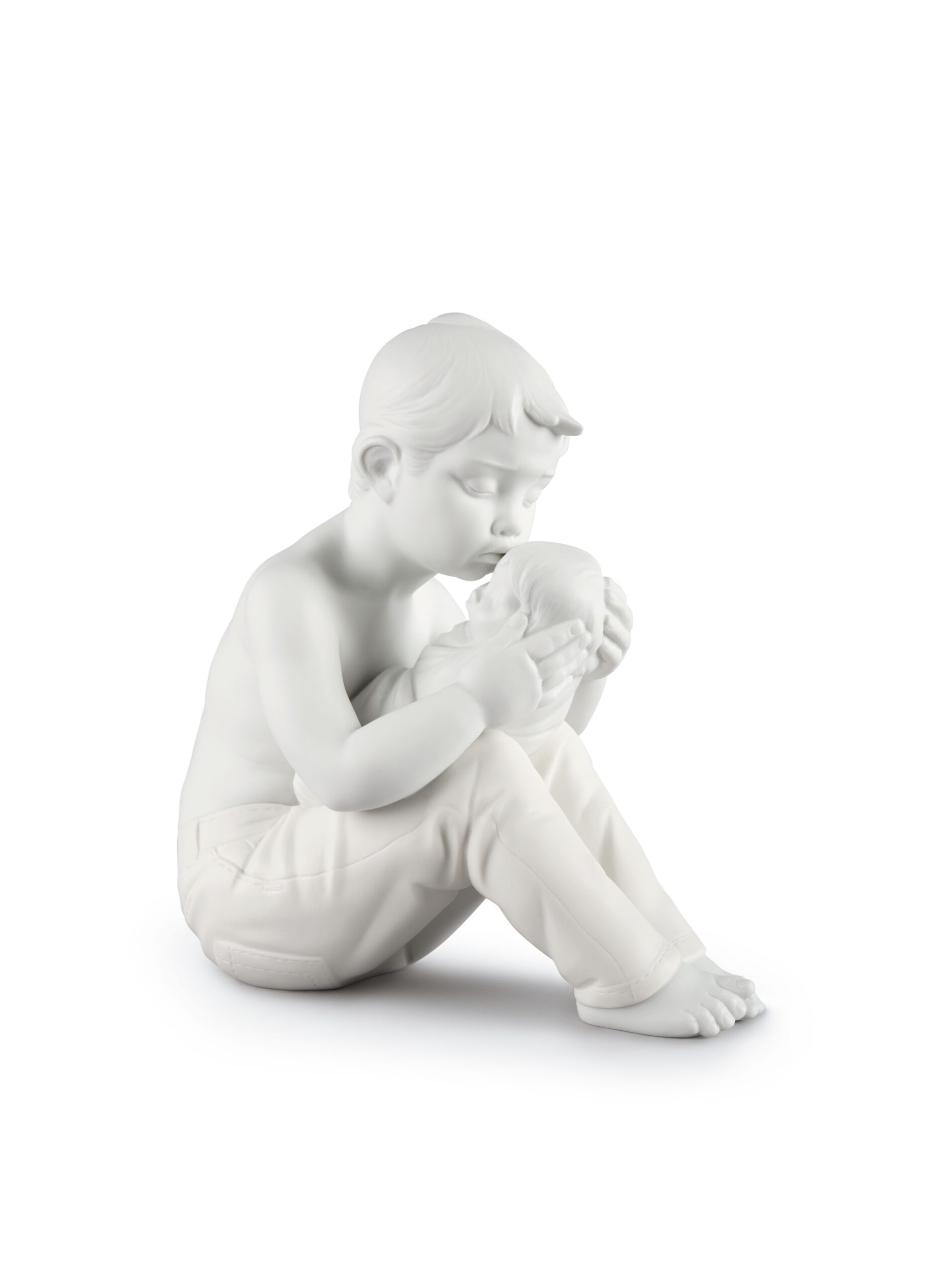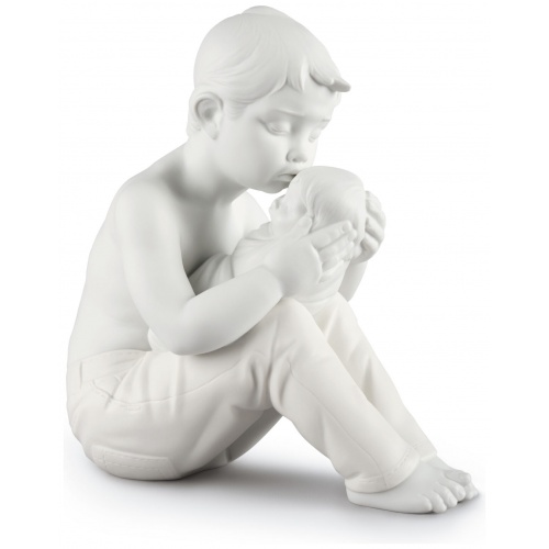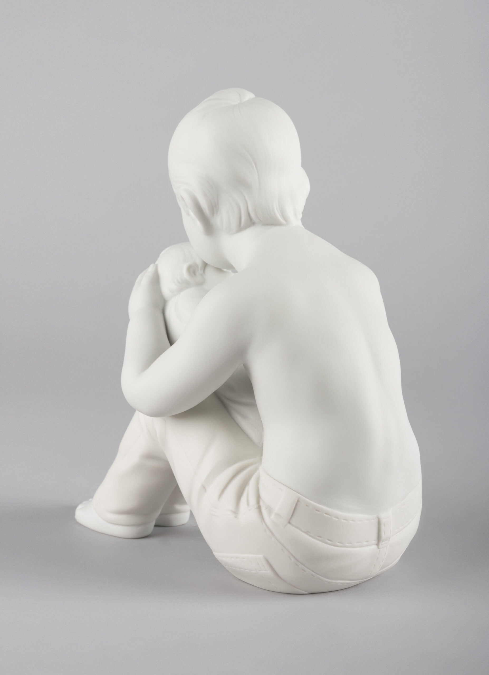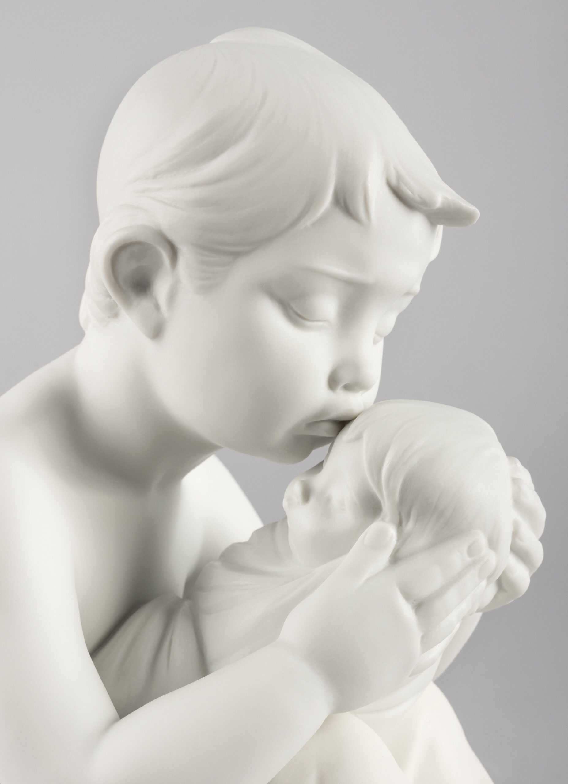 A charming and at once realist sculpture, delicately modeled in white matte porcelain. A piece with great decorative potential, perfect as a gift for a mother or as a memento of the birth of a new member of the family. Handcrafted in the Lladró workshops in Spain.