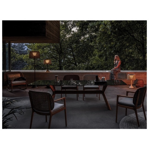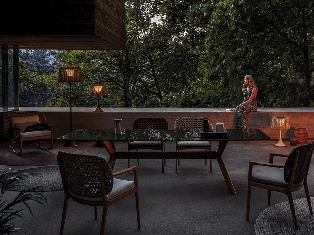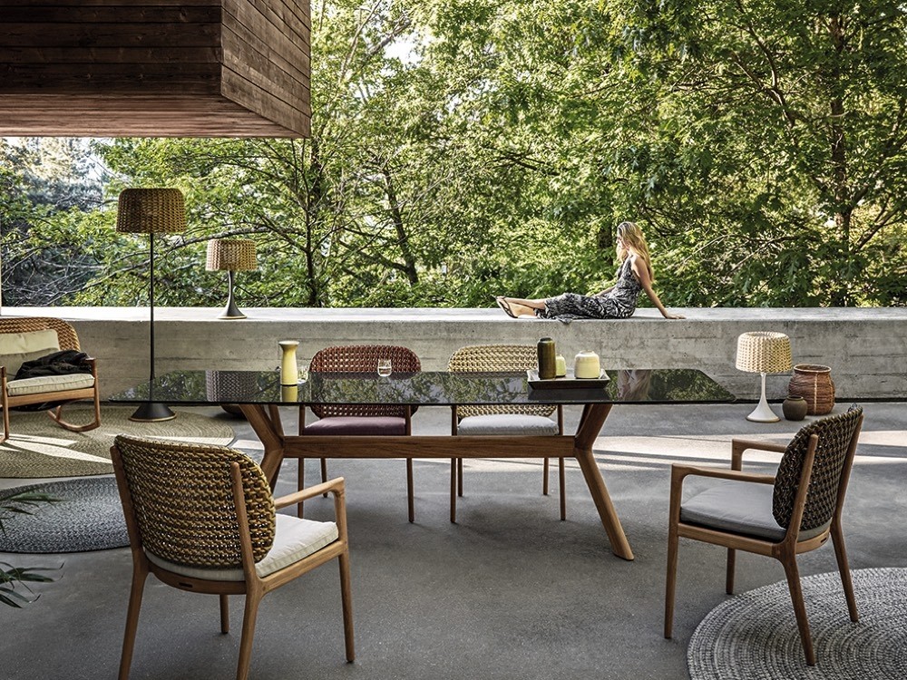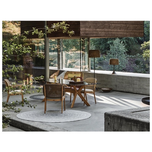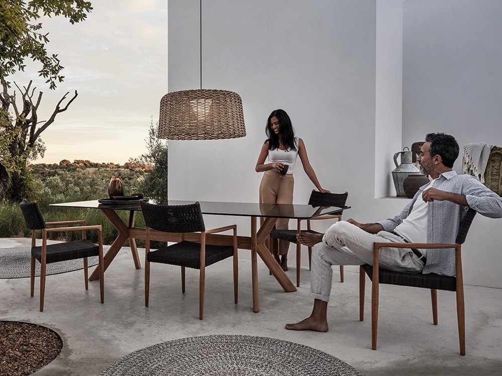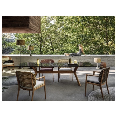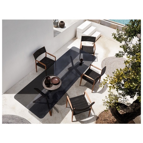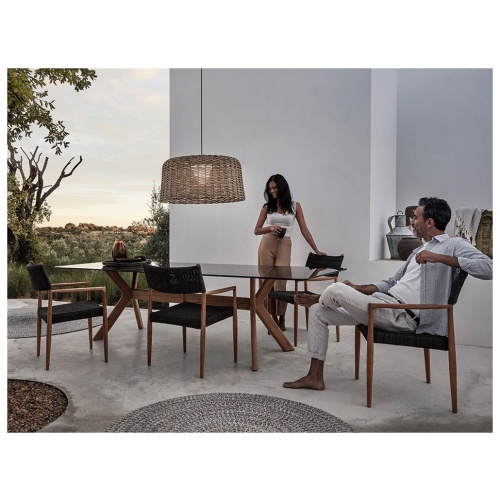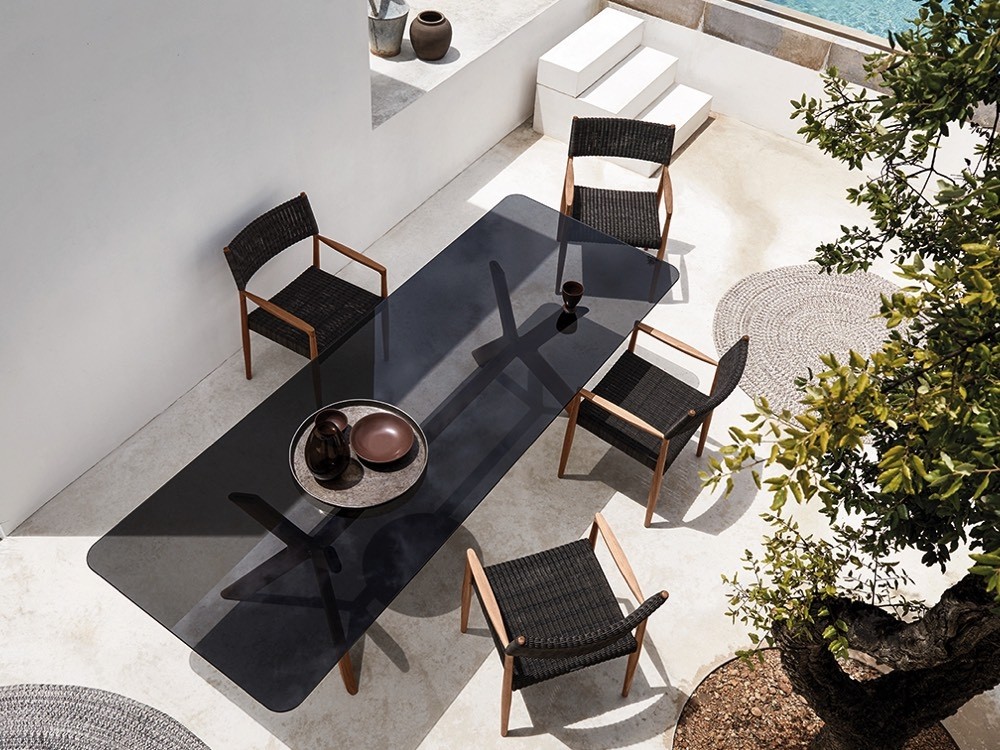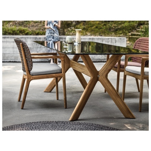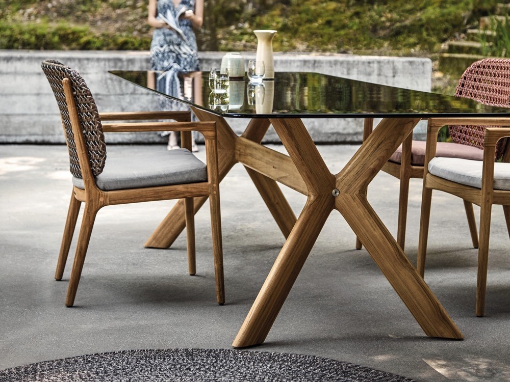 Love alfresco dining? Then enjoy it all year round with this striking table from Gloster. Featuring a statement teak base and a seductive grey glass top, the X-Frame promises to become the focal point of any garden setting.