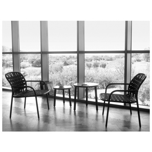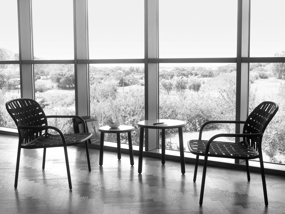 The signature feature of the Yard collection is the way it mixes materials, such as stainless steel or ash with aluminium.