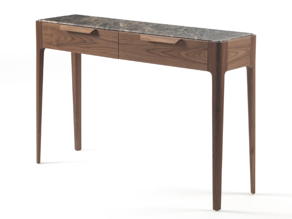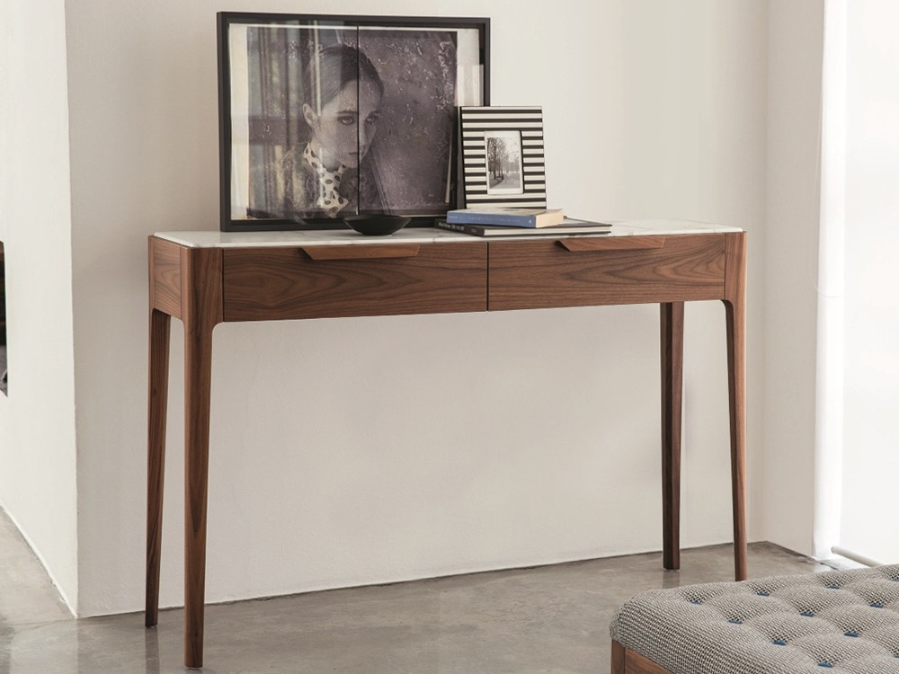 The Ziggy Console Table represents a sophisticated addition to Porada’s bestselling table range. Its timeless design language is indebted to the luxurious walnut or ash frame which can be paired with a top in a wide range of finishes.