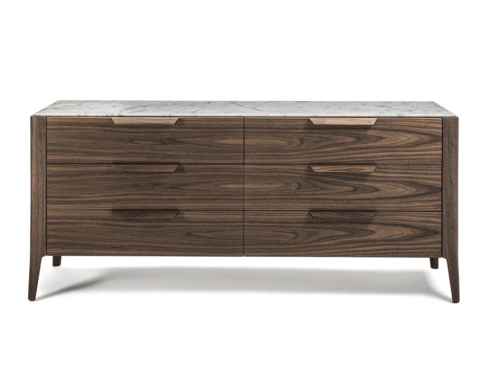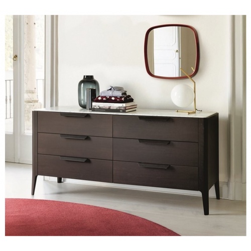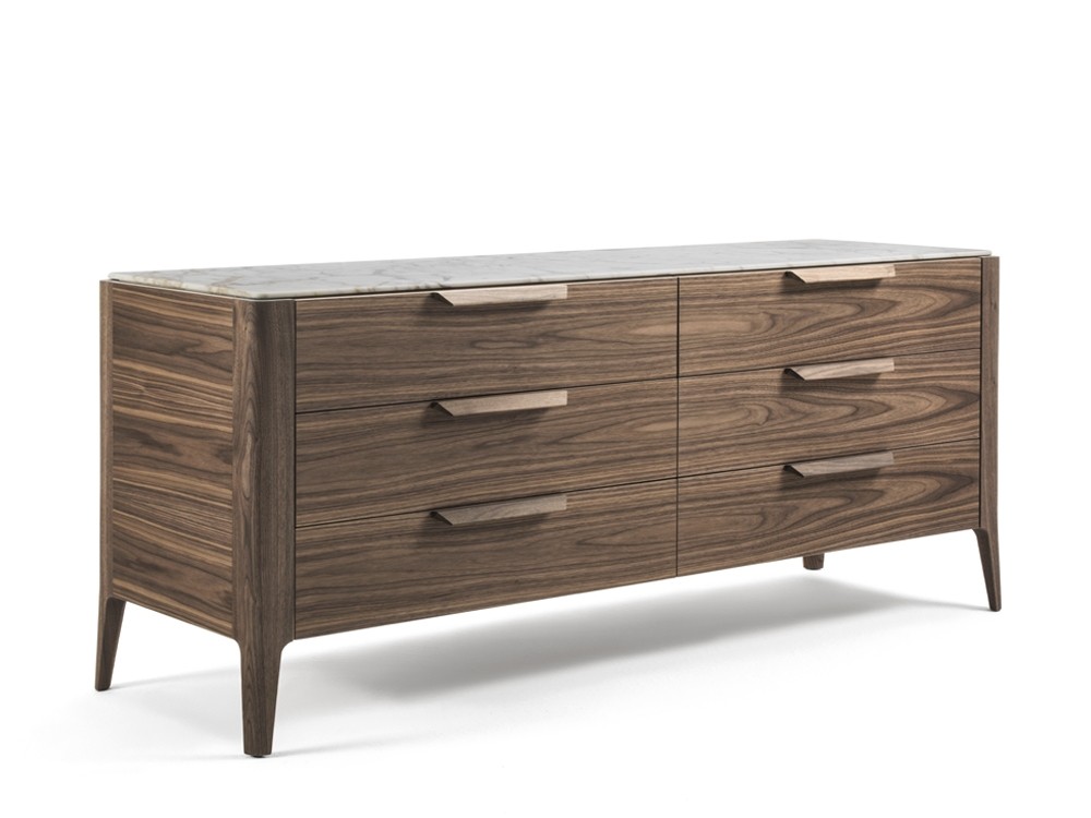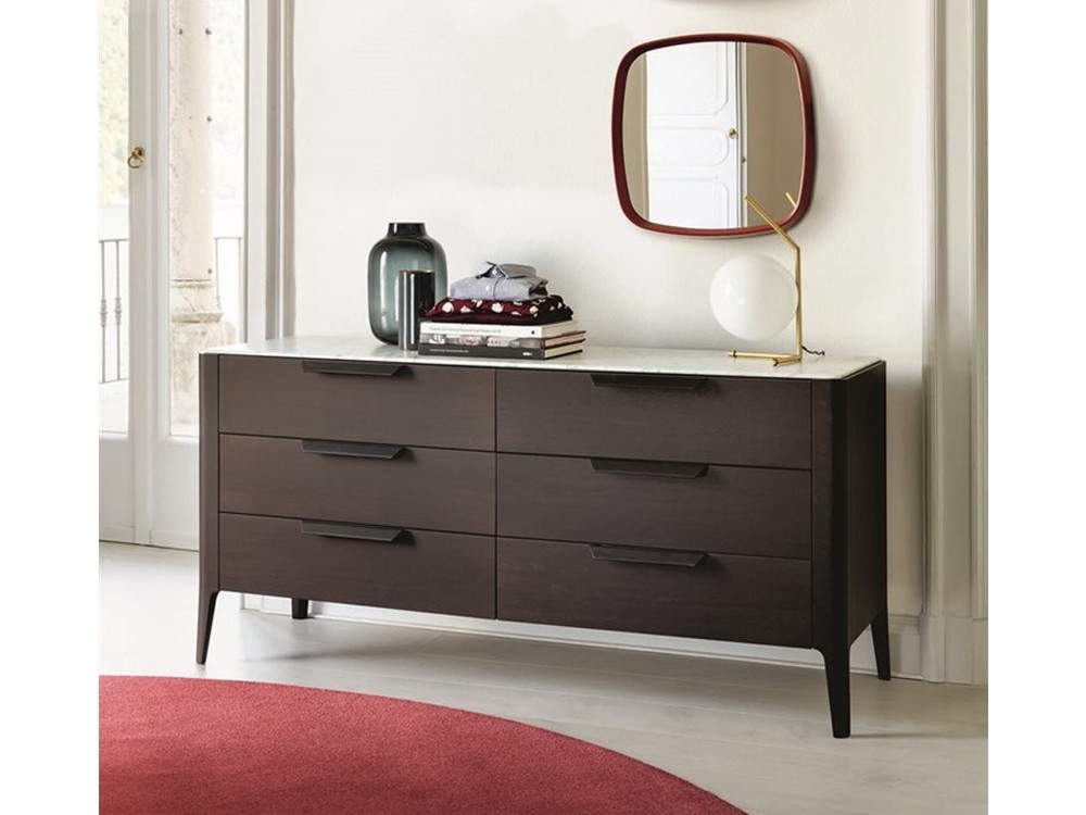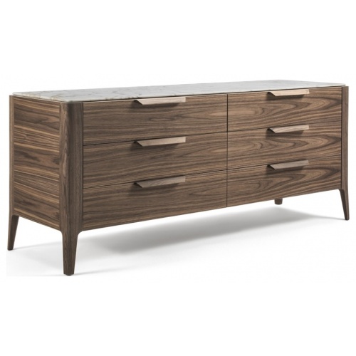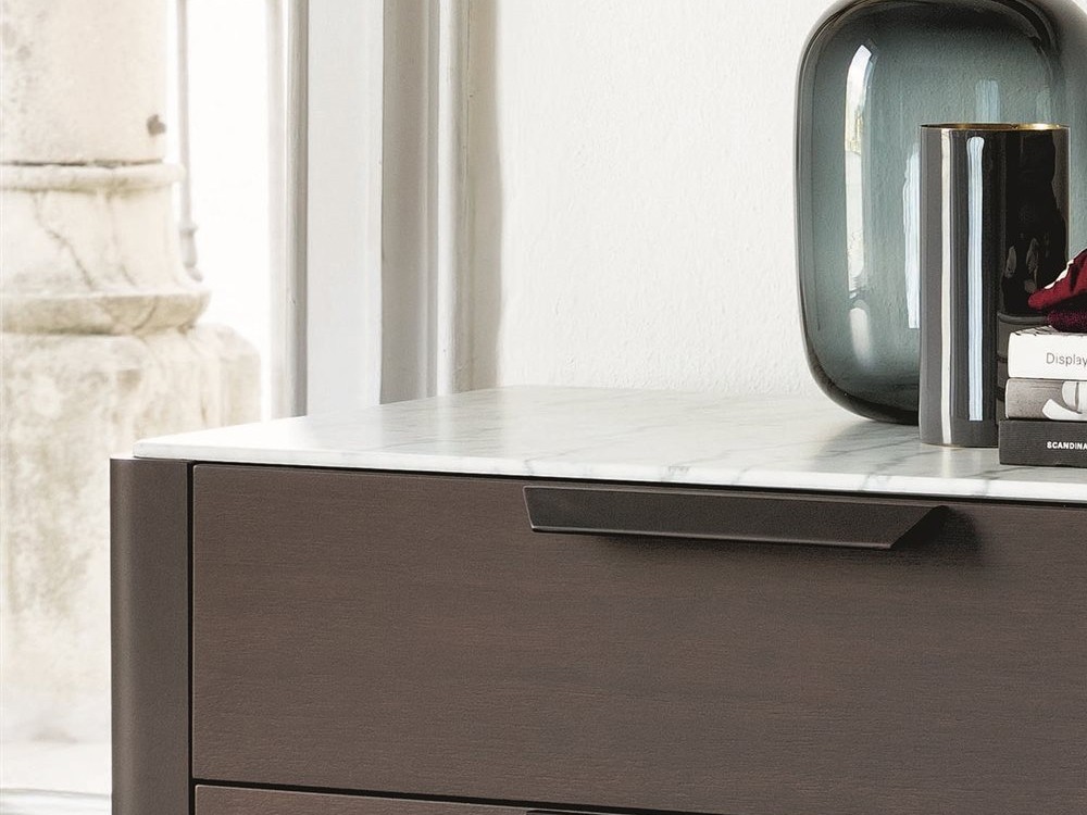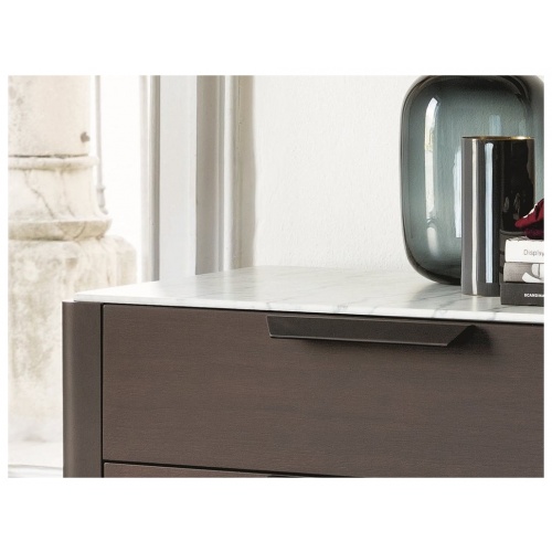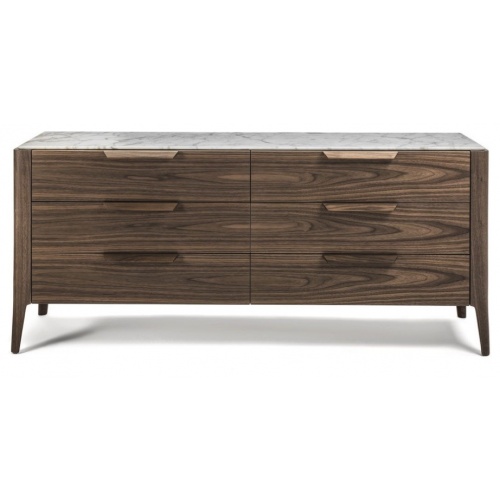 A gorgeous chest of drawers designed by C Ballabio for esteemed Italian manufacturers Porada. The grace of wood combines with the luxe appeal of marble and glass to create a truly classic bedroom furniture design.